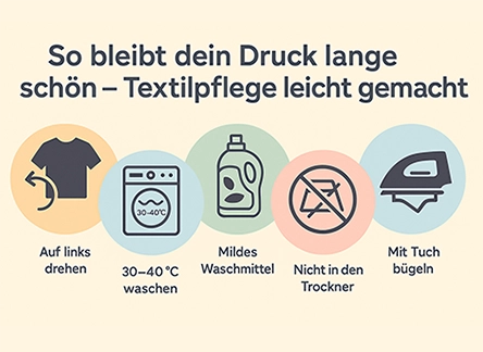 Modernste Drucktechnik, beste Textilien – garantiert langlebig.